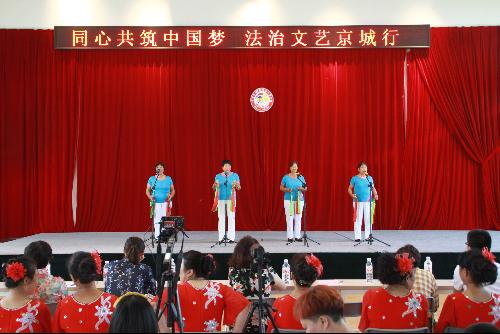为了营造良好的全民“学法、懂法、用法”的法治氛围,7月6日,韩村河镇开展了以“同心共筑中国梦 法治文艺京城行”为主题的法制宣传文艺演出活动。镇宣传部长史春彦、副镇长谢朝阳、区司法局副局长王媛,相关科室负责人及参演群众100余人参加活动。